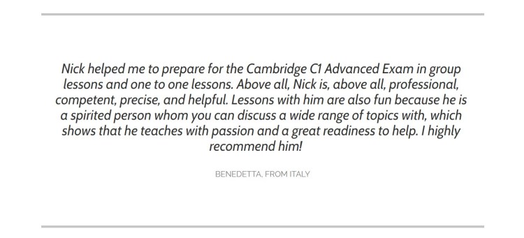 If you’d like to know more about my English courses then get in touch with me, and we can have a chat about it. I can’t wait to hear from you.
